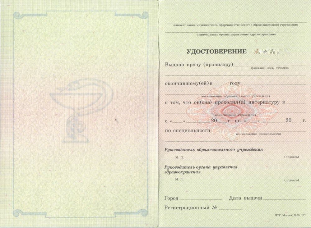 • Документ: Удостоверение интернатура